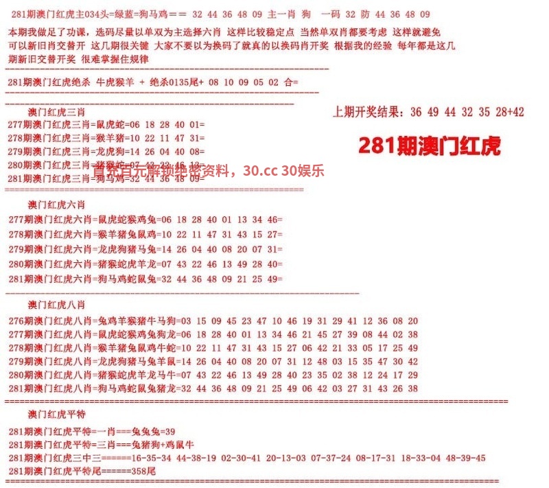 281期:[九肖]虎兔猴狗蛇鸡龙开:羊47